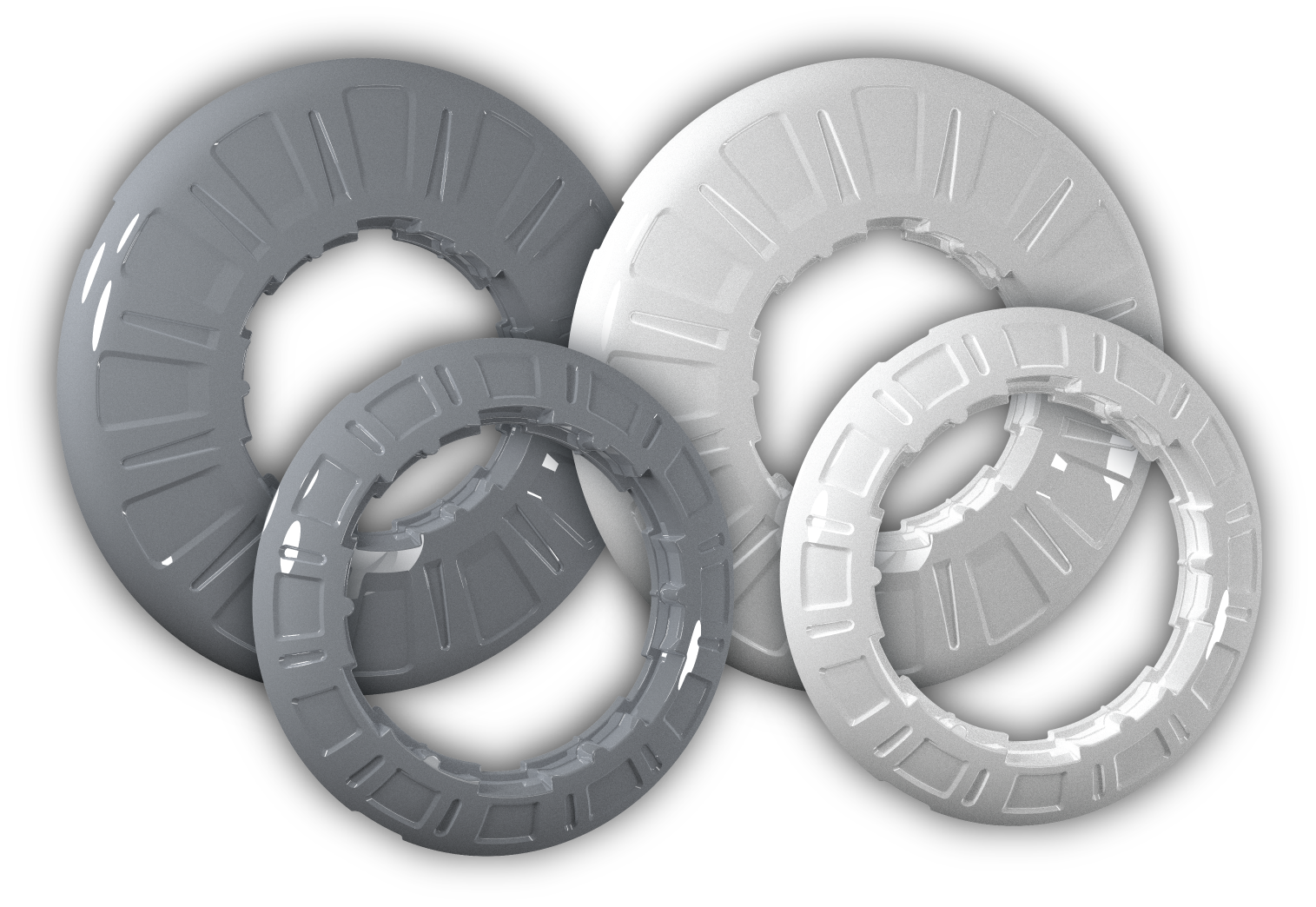 Les petites tailles de jantes en béton et les grandes tailles de jantes en vinyle ou en fibre de verre sont incluses dans chaque kit rétro et peuvent être facilement échangées pour répondre à toutes les exigences.